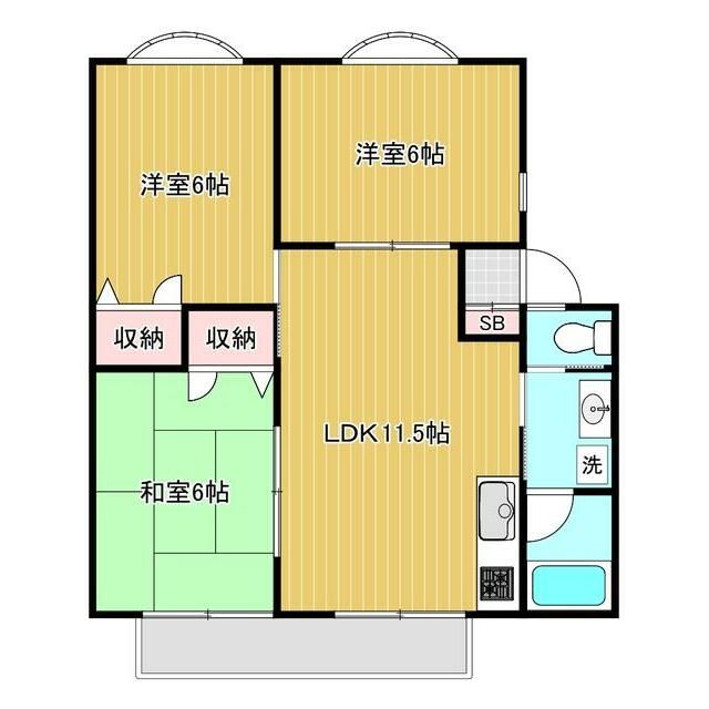 築年月 1994年8月  間取り 3LDK( 和室6畳/洋室6畳/洋室6畳/LDK11.5畳 ) 専有面積 58.38m2